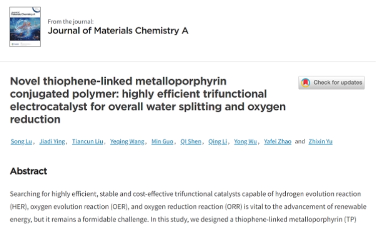 绅士动漫 新能源研究所郁志新团队在《Journal of Materials Chemistry A》, 《Energy & Fuels》等权威期刊发表系列论文