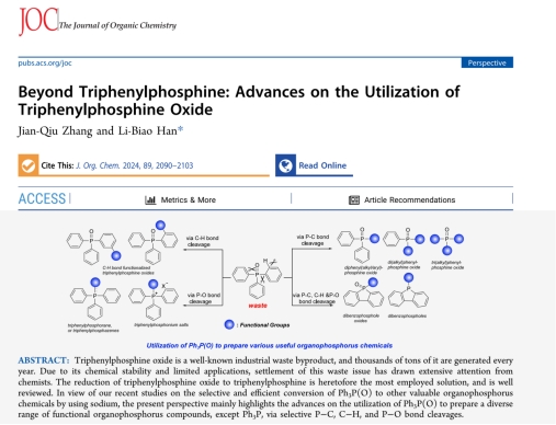 研究进展二:团队负责人受邀在《The Journal Organic Chemistry》期刊上以通讯作者的身份发表题为“Beyond Triphenylphosphine: Advances on the Utilization of Triphenylphosphine Oxide”的综述性论文。