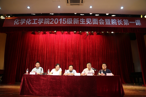 2015级新生见面会暨院长第一课在月明楼报告厅隆重举行。齐陈泽院长、魏佩敏书记等学院主要领导就坐主席台,学科主任、专业主任、行政及新生班主任和2015级全体新生认真聆听了第一课。