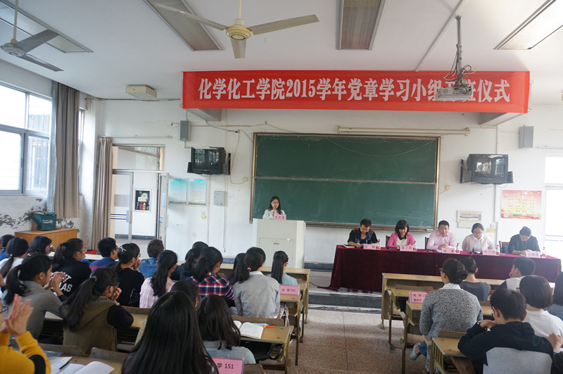 委员会分党校在志廉楼156教室举行了2015学年党章学习小组开班仪式。学院党委副书记徐青、学生科副科长章江燕、分团委书记田晓彦、研究生辅导员赵健出席参加,专职组织员俞兰芳主持开班仪式。