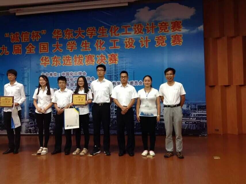 学生在2015年“诚信杯”华东大学生化工设计竞赛决赛暨2015年“东华科技-三井化学杯”第九届全国大学生化工设计竞赛决赛华东赛区选拔赛中获得一个全国二等奖和一个华东赛区一等奖!在2015年“ZEDC杯”第九届浙江省大学生化工设计竞赛决赛中分别获得二等奖、三等奖!