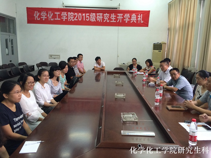 院长齐陈泽教授首先代表学院向2015级研究生表示真挚的祝贺和热烈欢迎。齐院长从学院发展历史、教师队伍现状、学科平台基地、科学研究情况、人才培养情况、国际交流合作、学院发展前景等几个方面全面展现了化学学院,对全体新生较快地融入化学学院,开启全新研究生生活提供了方向。齐院长还特别强调科研道路要严谨,要严守学术道德,更要坚定对化学的热爱,合理规划研究生生活。