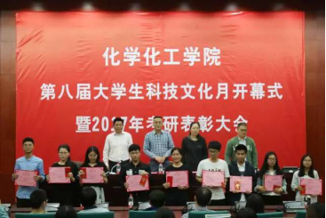 结合专业特色在3月-6月举办了融趣味性、知识性、创造性、分享性、传播性、服务性为一体的“大学生科技文化月”系列活动,主要包括:2017届考研表彰暨2018届考研动员会、学生科研成果展及学生科研讲坛、青年之声--优秀学子经验分享会、剿灭劣V类水社会实践活动、“化学在身边”系列主题活动。