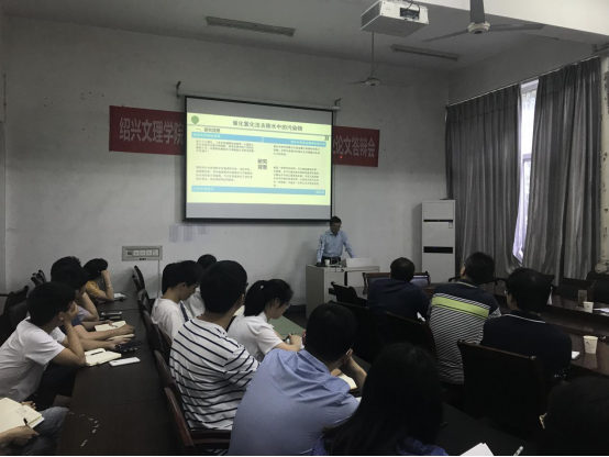 讲座中,陈教授提到,由于人口增长、工业化和城镇化的推进,工业污水和生活废水大量排放造成环境和资源的压力逐渐增大,在污水处理技术中,高级氧化法具备能耗低、常温常压进行等优点,具有很好的应用前景。陈教授首先介绍了近几年课题组通过研究g-C3N4催化剂以及对其改性,从而提高光催化效率,主要应用于光催化降解罗丹明B,并取得了良好的进展。其次介绍了“吸附富集-催化氧化”法来去除有机微污染物,采用高吸附量、催化活性的新型碳纳米材料循环高效去除微污染物。陈教授最后介绍了浙江师范大学,并对在座的研究生们提出诚挚的邀请,并希望我校有意愿研究生报考浙江师范大学博士。