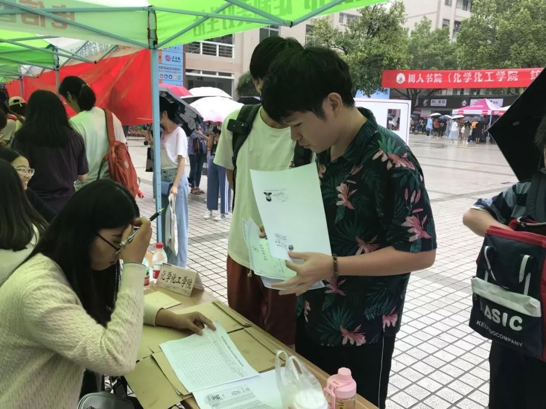 新生和家长,并亲切慰问了参与迎新工作的老师和同学。