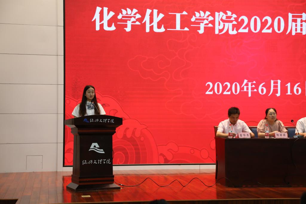 随后,各班班长作为校友联络员上台领取了聘书;毕业生代表领取了毕业生纪念品;化师161班胡宁洋代表全体毕业生表达了对母校老师的敬意与谢意。