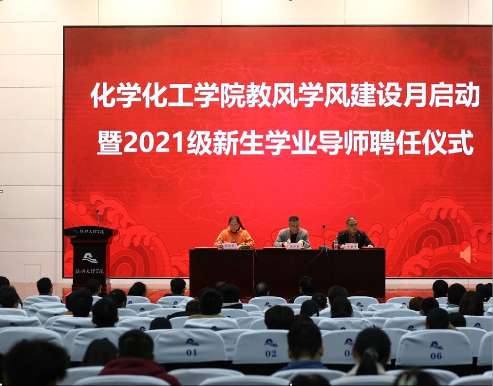 教风学风建设月启动暨2021级新生学业导师聘任仪式在铁城科教馆报告厅举行。学院党委书记魏佩敏、执行院长曾敏峰、副院长陶菲菲出席了本次大会。各班主任、新生学业导师以及2021级全体新生及其他年级学生代表参加了会议。