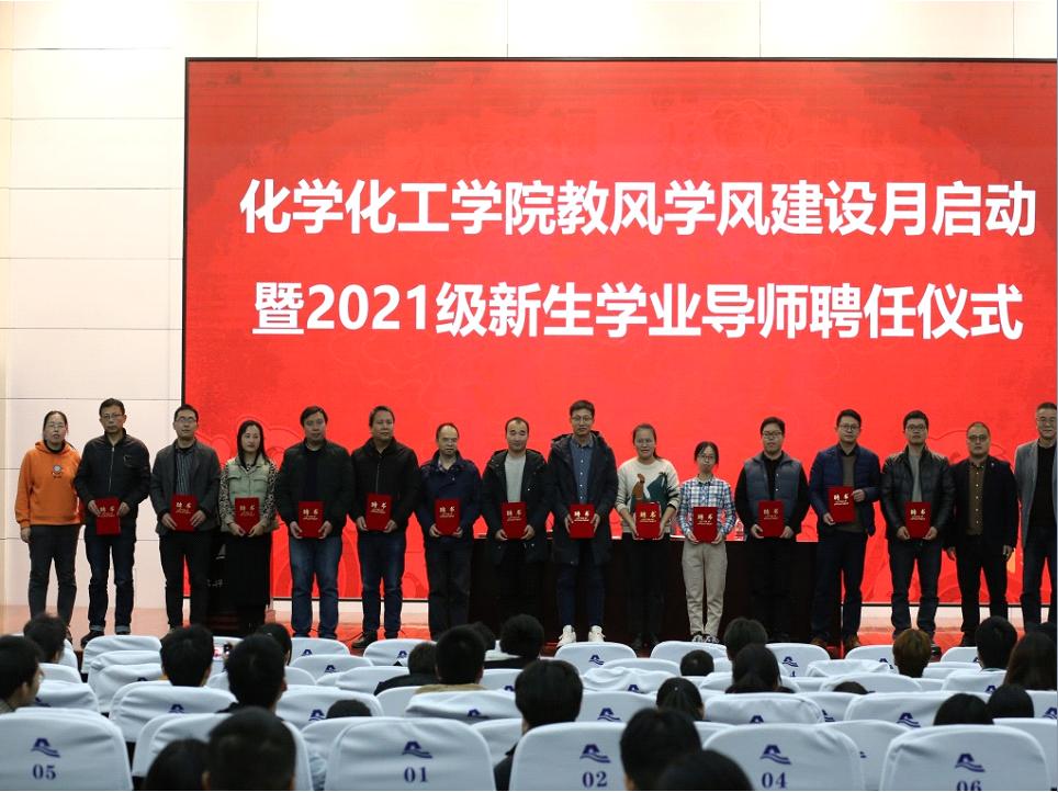 本科新生学业导师的通知》,主席台领导为新生学业导师颁发了聘书。