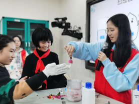 化学化工学院开展趣味科普实验课程走进中小学活动,大学生科普志愿者大手牵小手,让“双减”后的孩子们在寓教于乐中提高自身科学素质,助力科技强国梦。