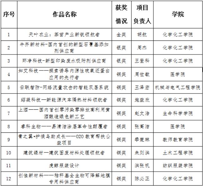 省第十三届“挑战杯”我校获奖作品一览表(同类奖项排名不分先后)