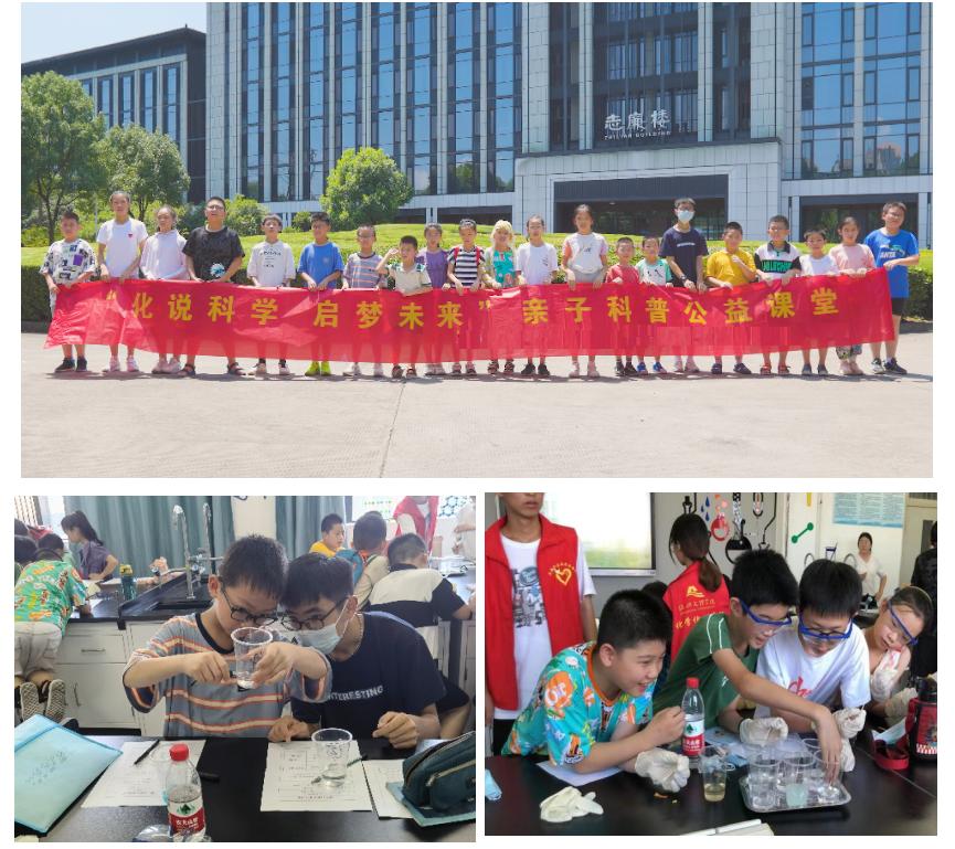 化学与新材料科普基地和绍兴晚班小记者协会协办,内容包括明矾净水、化学红绿灯、凌波微步、水中龙卷、酸碱的奥秘、“雾中精灵”神奇的丁达尔效应等趣味科普实验和公益家长课堂。