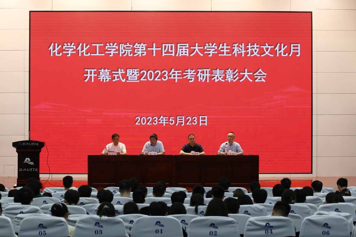 2023年5月23日中午,学院在铁城科教馆报告厅举办了第十四届大学生科技文化月开幕式暨 2023年考研表彰大会。学院党委书记徐青、执行院长曾敏峰、副院长董华平、副院长刘雪松、学院办公室、学生科工作人员,2023年考研录取学生,2020级备战考研学生参加了此次开幕式,会议由刘雪松副院长主持。
