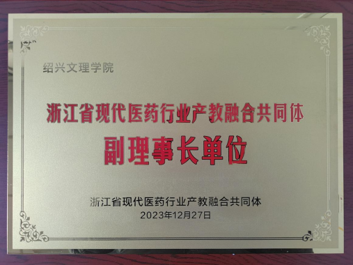 2023年12月27日,由浙江省药品监督管理局、浙江省教育厅主办,浙江药科职业大学、浙江省药品类职业教育行业指导委员会等7家单位承办的现代医药行业产教融合共同体成立大会暨医药产教论坛在浙江宁波举行。学院副院长董华平和药学系副主任余乐茂受邀参会,会上我校被遴选为副理事长单位。