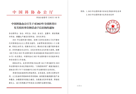 近日,中国科协办公厅发文对2023年全国科普日有关组织单位和活动予以表扬,其中绅士动漫
