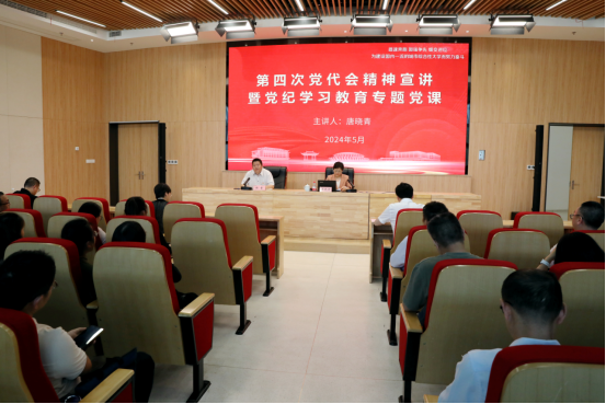 党员教师作第四次党代会精神宣讲暨党纪学习教育专题党课。唐书记结合学校第四次党代会精神和党纪学习教育要求,传达了市委书记温暖在党代会开幕式上的讲话精神,阐述了党代会报告的主要精神和目标任务,阐释了加强党的纪律建设的重要意义,并结合现实案例开展警示教育。学院党政领导班子成员、科级以上干部、全体教师党员参加党课。