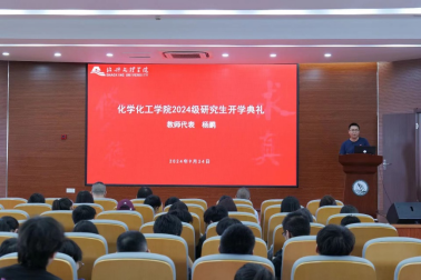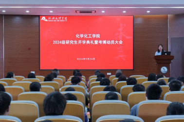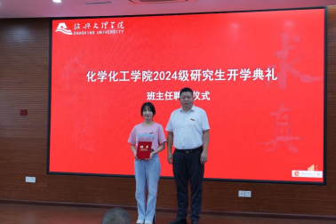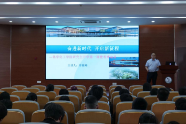 在典礼的最后,执行院长曾敏峰做“新生第一课”和考博动员。他从学院的办学历程、发展现状、远期规划等方面介绍了学院的基本情况,以及学院在研究生人才培养方面取得的成绩和学院建设化学一级学科博士学位点的显著进展。在考博动员讲话中,曾敏峰院长对近几年学院研究生考博情况进行了总结,鼓励全体研究生树立更高目标,早做规划,学院将高度重视研究生考博工作,不遗余力为研究生考博营造良好氛围。