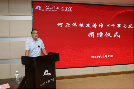 何云伟校友回忆了在母校度过的难忘求学时光和青春岁月,母校成为他人生发展的启蒙地,感谢母校对自己的栽培。他勉励在校学生,要把“求是”作为一种求学方式,以研究的精神对待学习与工作,树立想干事的意识,珍惜能干事的机遇,干中学、学中干,学中思、思中进,干学研一体化,终会有干成事的作为。最后,他由衷祝愿母校早日更名为绍兴大学,学院顺利获批博士学位点。