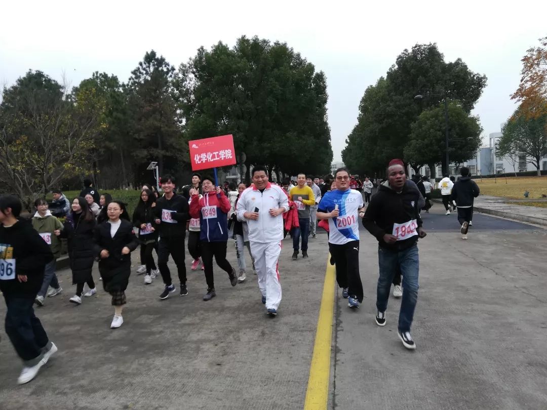 12�18日下午,学校南山校区篮球场人头攒动,热闹非凡,绍兴文理学院第二届校园短程马拉松比赛开跑。学校领导为校第二十五届运动会团体总分前八名的学院颁奖并为比赛鸣枪,我院执行院长曾敏峰、党委副书记徐青亲自带队领跑,我院共280余位师生代表参加了比赛�