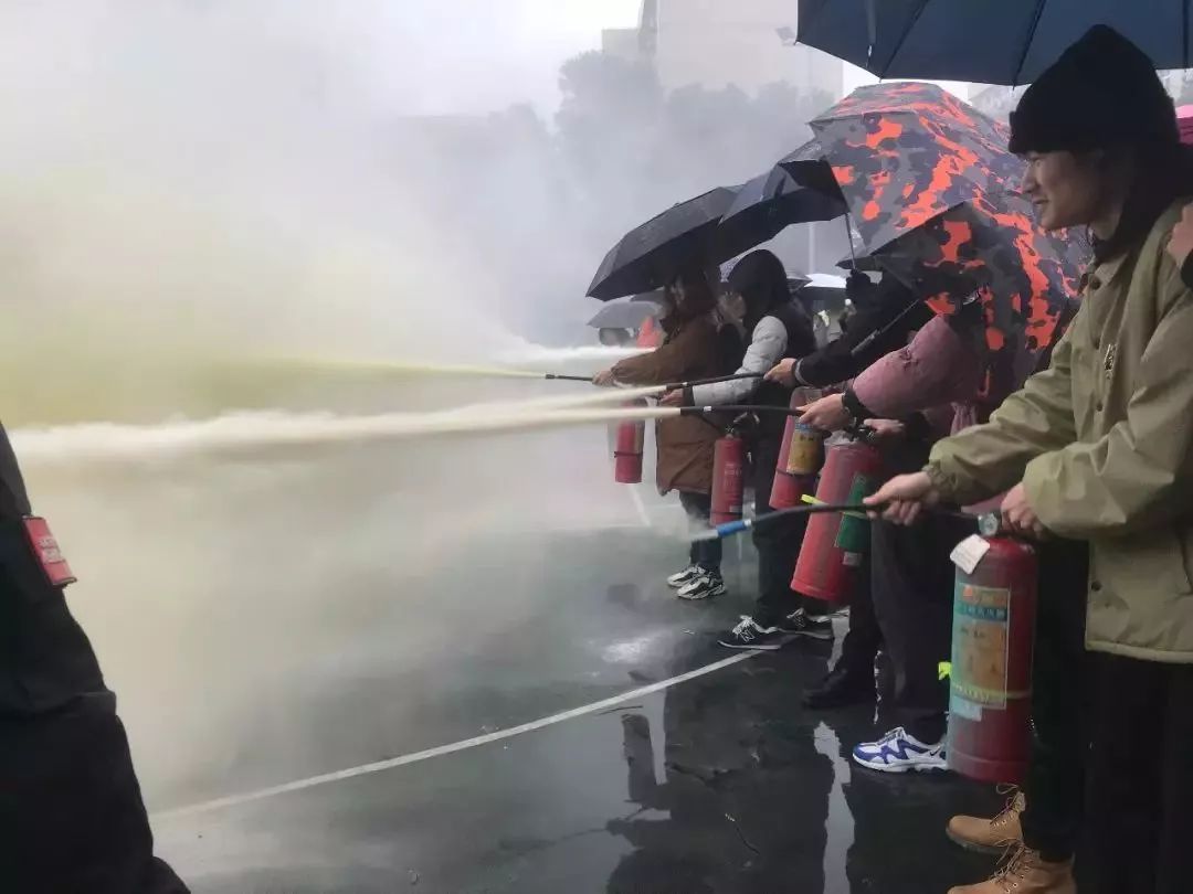 接着,为了让现场的同学们完全掌握灭火器的使用方法,保卫处准备了大量干粉灭火器供大家演练操作。同学们体验了现场灭火的过程,面对熊熊燃烧的火堆,同学们表现十分沉着、镇定,顺利地按照灭火的步骤和方法,将火焰成功地扑灭�