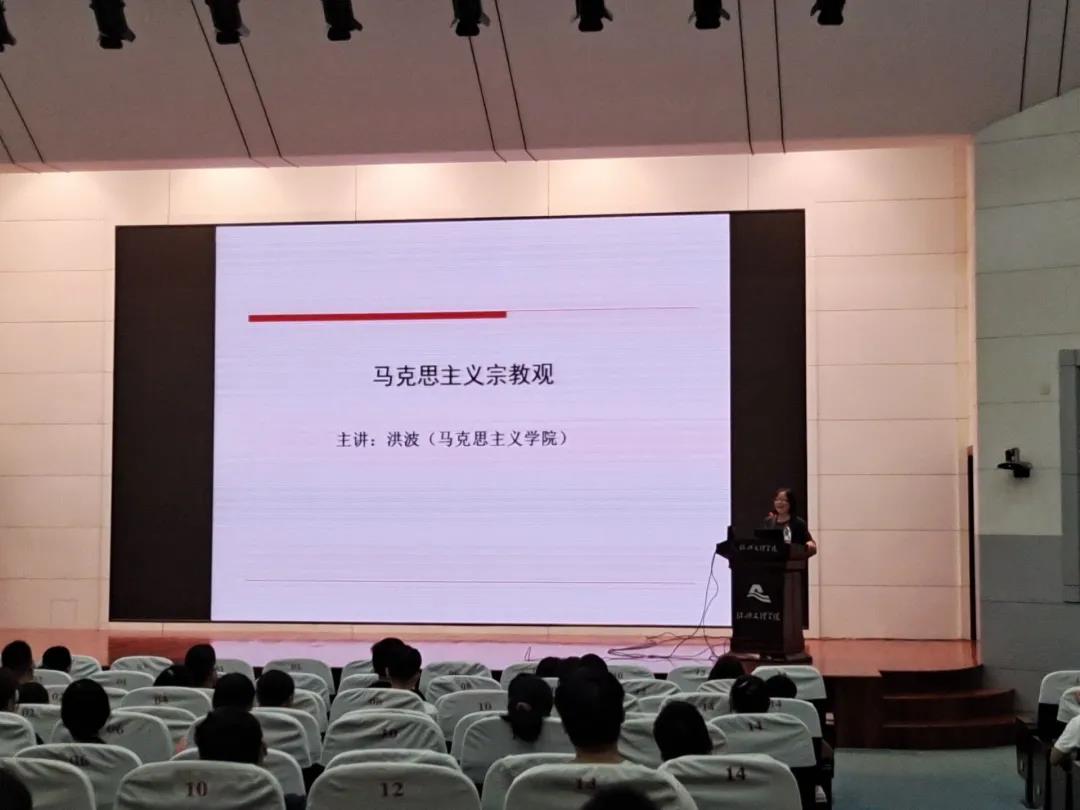 9�22日上�8�30,我院在铁城科教馆报告厅举行2020级新生马克思主义宗教观及国家宗教政策法规教育讲座,旨在帮助大家树立对马克思主义宗教观的正确认识。本次讲座特别邀请马克思主义学院的洪波教授主讲�