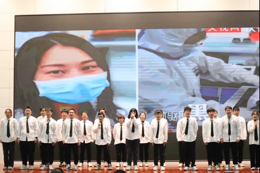 随后,校主持人队集体朗诵了以抗击疫情为主题的诗歌《相信》,以及来自艺术学院的林哲同学和傅瑜佳同学为我们带来了女生合唱《共和国之恋》�