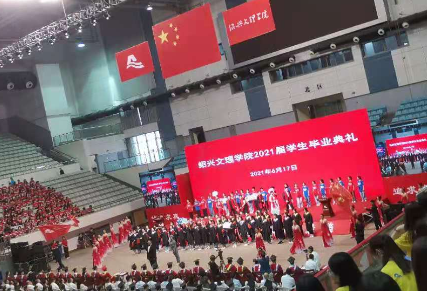 6�15日上午,我院2021届本科毕业生学位授予仪式在学校体育馆隆重举行。绍兴文理学院校长王建力教授,学院领导和部分教师代表出席了典礼,仪式在庄严的国歌声中拉开序幕�