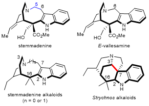 Stemmadenine生物碱是一类广泛分布于夹竹桃科和马钱科植株中的吲哚单萜类生物碱,拥有细胞毒性、抗菌、镇痛等众多生物活性。其中,conolidine因其具有强力非阿片类镇痛活性而受到广泛关注。此外,stemmadenine是包括抗癌药vinblastine在内的众多吲哚生物碱的重要生源合成中间体。本研究根据结构特征对70多个stemmadenine及相关生物碱进行分类,详细归纳了该类生物碱的生物活性,综述了stemmadenine的生源合成路线和全合成路线,并对后续研究前景进行了展望。该工作为相关生物碱的合成及生物、药物活性的进一步研究提供了思路。